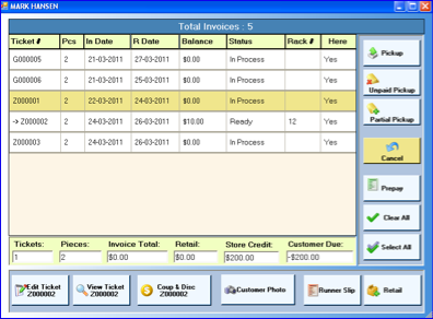 | Pickup The Touch Control Dashboard is starting point for all commonly used functions. Everything you need to do on a daily basis is right here. From, writing a ticket, picking up an order, researching a customer history, recalling a ticket, to voiding an order. It's all in one place! |